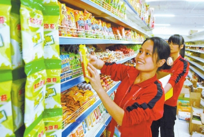 超前購物廣場的員工正在擺貨品。