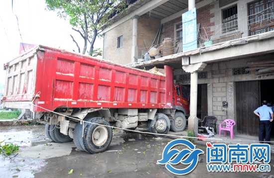 隔壁鄰居楊先生,目睹了整個事故過程。他說,當時324國道上,一輛小車違規(guī)掉頭變道,正處在下坡路往泉州市區(qū)方向行駛的土方車,為避免撞車,急打方向盤右轉(zhuǎn),不料沒剎住車,一頭扎進民房。