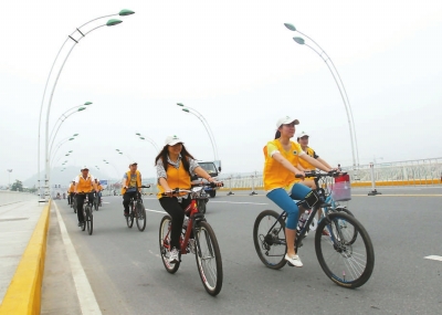 昨日8時(shí)30分,60名環(huán)保志愿者從武榮公園鐘樓出發(fā),開(kāi)始了環(huán)西溪(市區(qū)段)自行車(chē)“綠色出行”環(huán)保宣傳騎行。