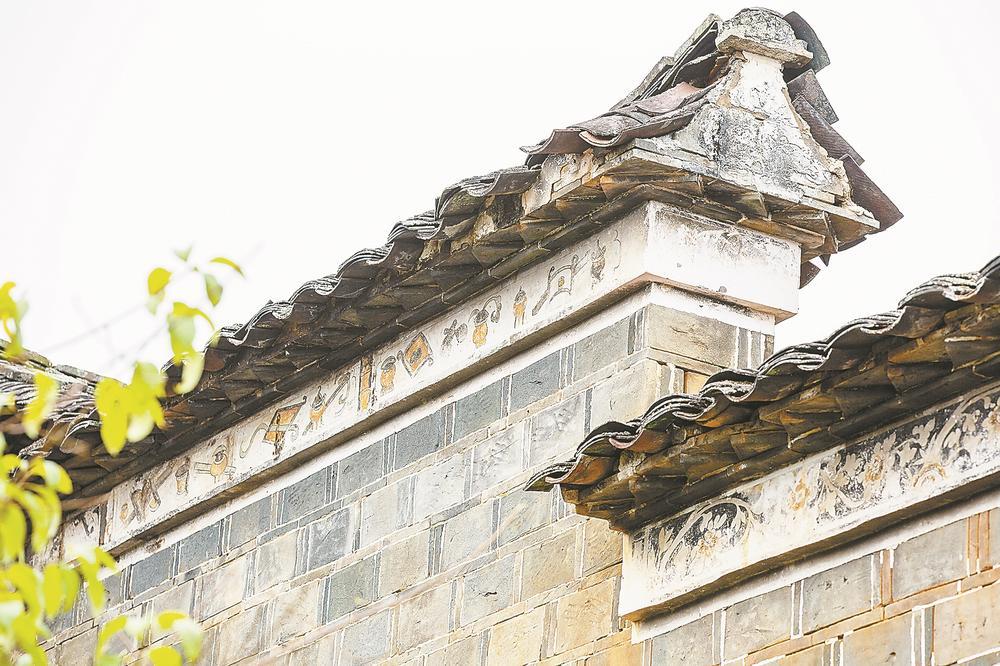 21日,武夷山市下梅村古民居用巖彩繪成的裝飾紋案,歷經(jīng)歲月洗禮,依舊保有鮮艷的色澤。