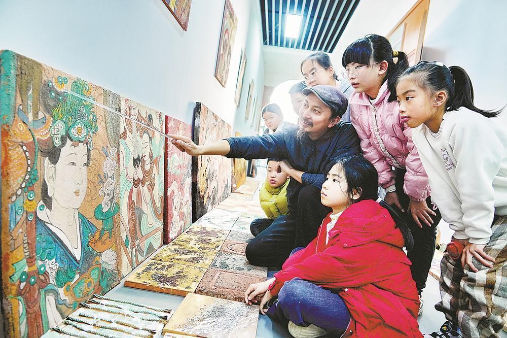 20日,參加武夷山市文化館巖彩畫公益課程的孩子們正在聽老師講解巖彩畫作。