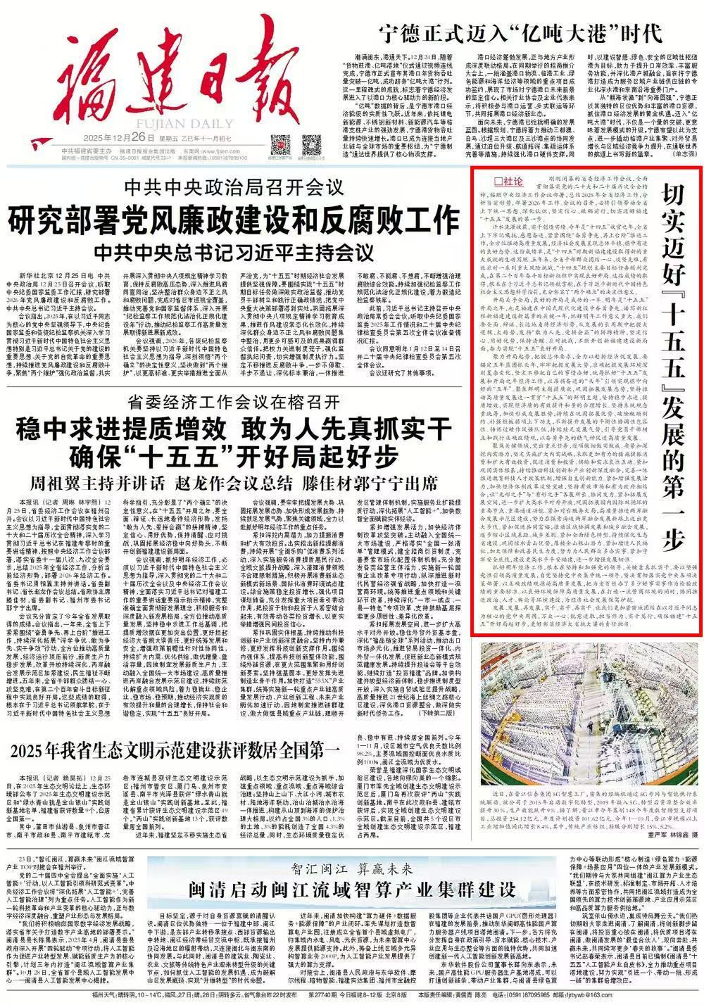 《福建日?qǐng)?bào)》2025年12月26日第01版
