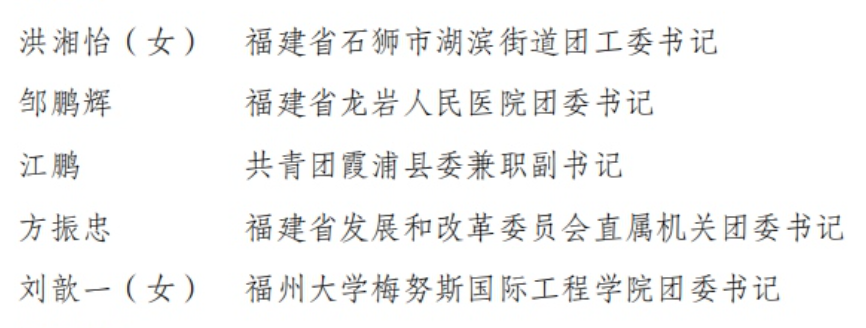經(jīng)基層團組織推薦、省級團委考察初審、共青團中央復審,提出690個團組織、451名團員、345名共青團干部的擬表彰對象名單?,F(xiàn)予以公示,公示時間為2025年12月24日至12月30日。公示期間,如對擬表彰對象持有異議,可通過電話、傳真、電子郵件、信函等形式反映情況,信函以到達日郵戳為準。反映情況要客觀真實,以個人名義反映情況的材料應提供實名及聯(lián)系方式,以單位名義反映情況的材料需加蓋單位公章。
