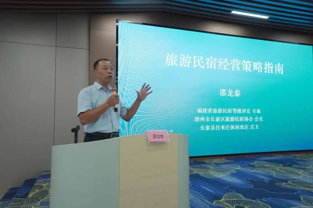 2015年,邵龍?zhí)╉憫亦l(xiāng)號召,帶領(lǐng)家人回到后坊村,創(chuàng)辦了首家鄉(xiāng)村民宿“往來莊”。在發(fā)展自身的同時,邵龍?zhí)╅_始思考如何讓整個鄉(xiāng)村活起來,他聯(lián)合村委、企業(yè)舉辦音樂沙龍、古琴雅集、婚紗攝影、康養(yǎng)禪修等系列文化活動,吸引眾多城市游客前來觀光打卡,助力提升長泰旅游知名度。在他的帶動下,村民們陸續(xù)開辦農(nóng)家樂、改造老宅為民宿,逐步形成多元業(yè)態(tài)共生的鄉(xiāng)村休閑產(chǎn)業(yè)鏈。2021年,邵龍?zhí)款^成立長泰區(qū)旅游民宿協(xié)會并擔任會長,積極推動《漳州市長泰區(qū)旅游民宿管理指導意見(試行)》出臺,為行業(yè)規(guī)范發(fā)展提供政策支持。同時,協(xié)會通過舉辦民宿管家、新媒體營銷師等技能培訓和“長泰民宿發(fā)展論壇”,不斷提升從業(yè)人員專業(yè)素養(yǎng),持續(xù)為地方經(jīng)濟注入新活力。