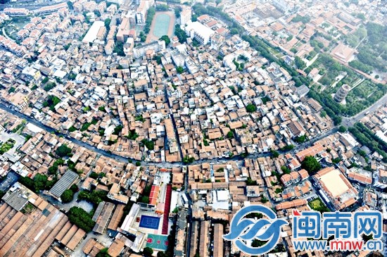 本報(bào)去年年底航拍的泉州西街,這一片磚紅成為古城的代名詞